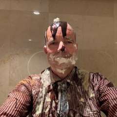 Amylith44 was surprised by Big Bird the Clown with a big sloppy cream pie to the face