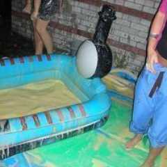 MessySexy got dunked by TexasBeau in a huge slime dunk tank